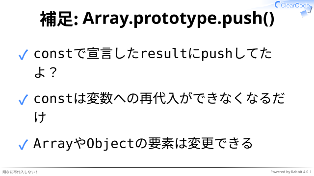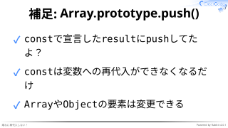✓ constで宣言したresultにpushしてた