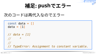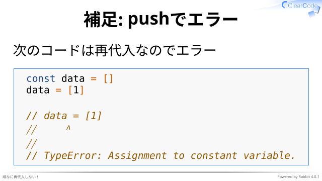 次のコードは再代入なのでエラー