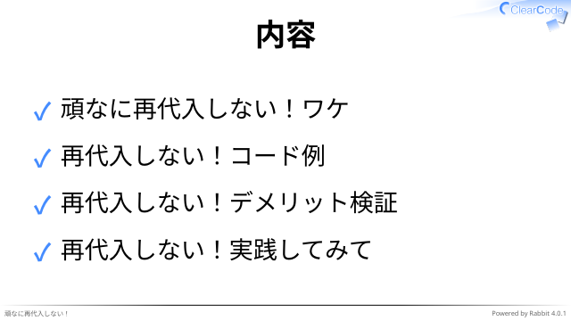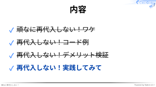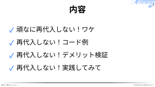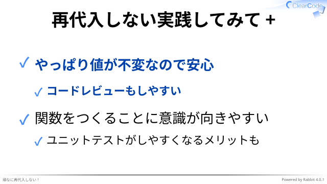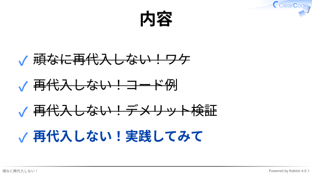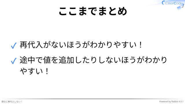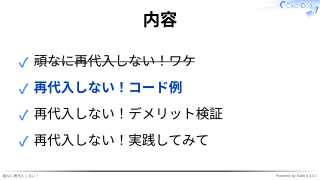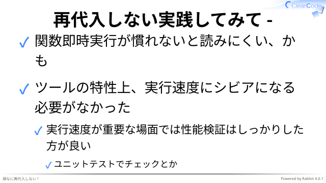 再代入しない実践してみて -