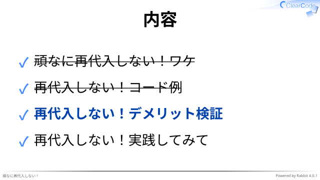 ✓ 再代入しない!デメリット検証