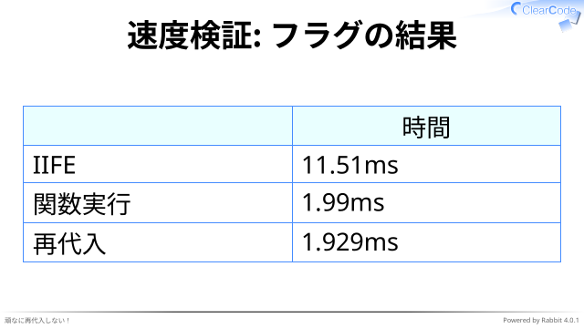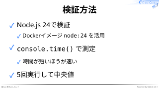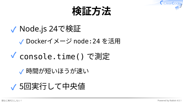 ✓ 実行速度が重要な場面では性能検証はしっかりした