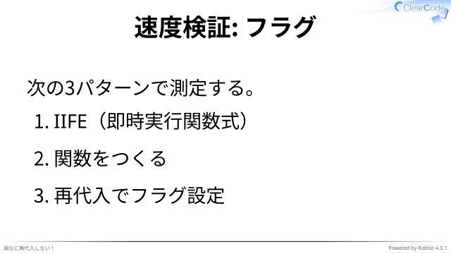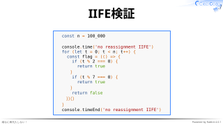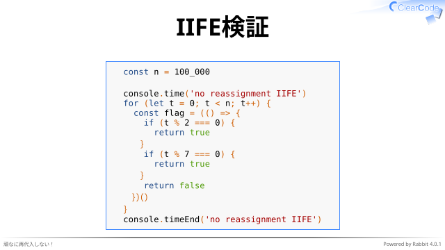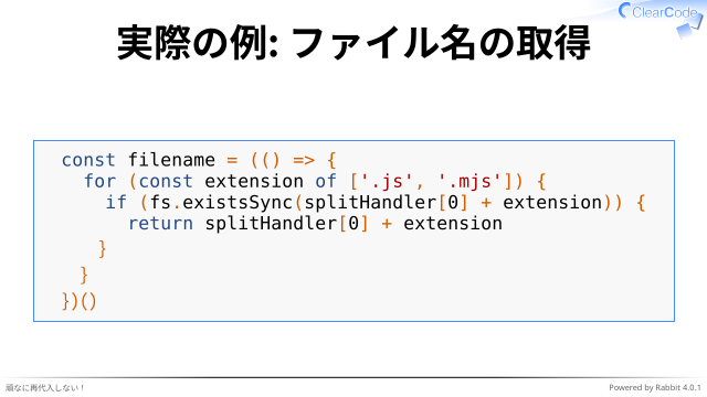 ✓ 関数即時実行が慣れないと読みにくい、か