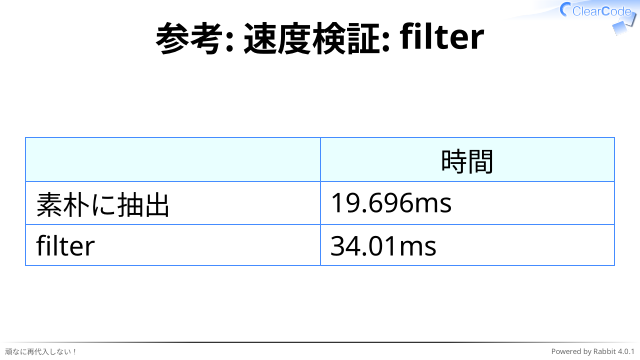 参考: 速度検証: filter