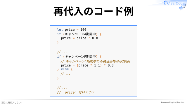 再代入しない!コード例