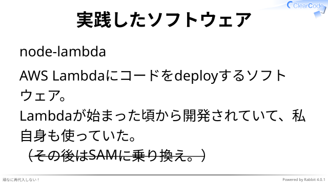 Lambdaが始まった頃から開発されていて、私