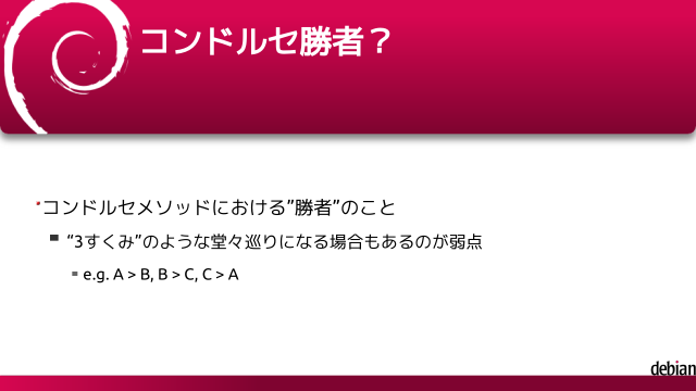 Debianの投票を例にコンドルセメソッドを学ぶ