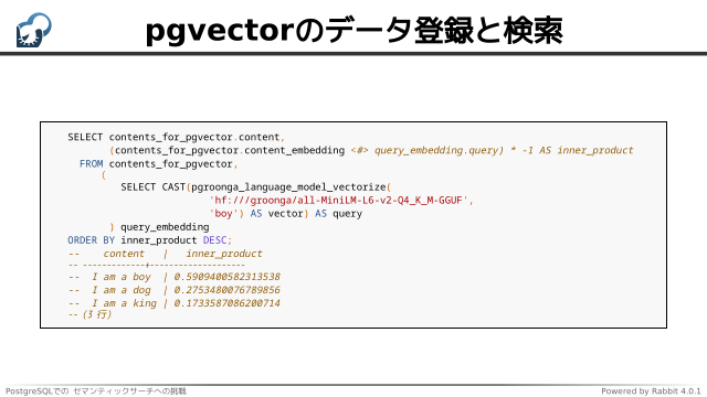 ORDER BY embedding <-> '['異世界転生して無双したよ'のベクトル]'