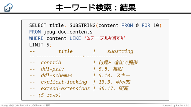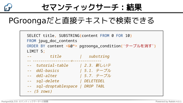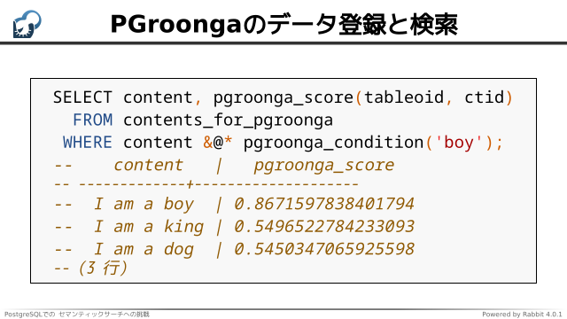 ORDER BY content <&@*> pgroonga_condition('テーブルを消す')