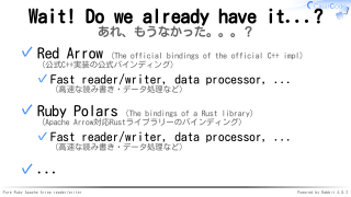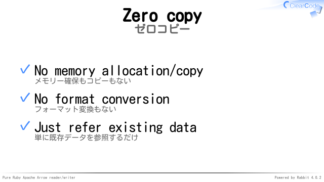 ✓ Pure Ruby Apache Arrow reader/writer