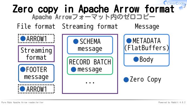 Apache Arrowフォーマット内でFlatBuffersフォーマットを使っている