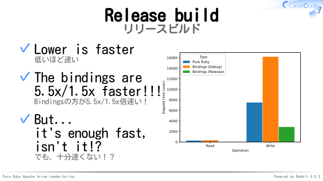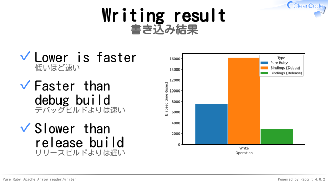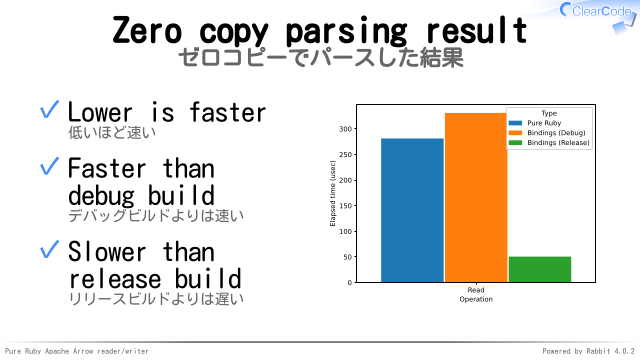 Apache ArrowのRuby実装は十分速い