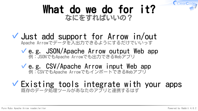 みんなのアプリをApache Arrow対応にしてね