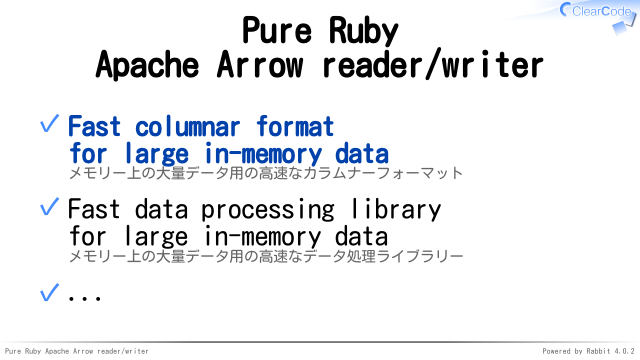 Rubyエコシステム内でApache Arrowをもっと広めたい!