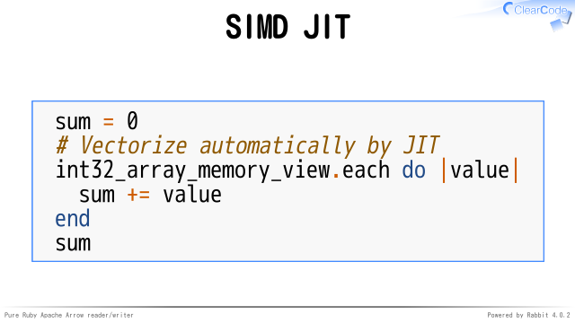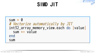 Ruby本体にSIMD用コードを生成するJITを追加