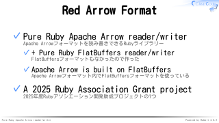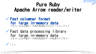 Apache Arrowフォーマットを読み書きできるRubyライブラリー